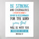 Seien Sie stark und mutig, seien Sie nicht davor, nicht entmutigt werden, denn der Herr, Ihr Gott wird bei Ihnen sein, wohin Sie gehen, Joshua 1:9. Die Kunst der Schrift, Dekoration der Verswand der Bibel, Zitat der Inspirationsbibel, Christliches Geschenk.