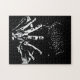 Stronh übergibt Puzzlespiel. Schwarzweiss