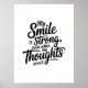 Dieses mächtige typografische Design weist das erfreuliche und treffende Zitat auf: "Mein Lächeln ist stark, selbst wenn meine Gedanken nicht sind." Die schwarzen, stilisierten Pinselskripte, die Pop auf einem hellgrauen Hintergrund zeichnen und so eine mutige Aussage machen. Es ist ein Bild, das die emotionale Widerstandskraft feststellt, wenn innere Turbulenzen mit äußerer Positivität verdeckt werden. Ideal für den Einsatz als motivierend Poster, als Wallpaper oder für den Austausch in Social Media.
