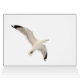 Ein subtiles Bild mit einem Möwe, der über dem Kopf in einem ruhigen Himmel fliegt.