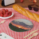 Starkstromleitungs-Sonnenuntergang-Landschaft Pappteller