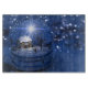 Im Inneren einer Schneekugel liegt eine Winterlandschaft mit einer Hütte, die von nackten Ahorn- und Kirschbäumen überschattet wird. In den Fenstern der kleinen Hauskerzen brennen, und auf dem Rasen ein Weihnachtsbaum Glitzern mit Rot und Gold. Es ist ein Abend in Christmastime, und die Lichter von tausend kleinen Sternen füllen den Globus, mit einem großen Weihnachtsstar, der die Nacht mit seinen Strahlen füllt, während die warmen Balken von innen in der Hütte die umliegende Landschaft erhellen.