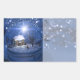 Im Inneren einer Schneekugel liegt eine Winterlandschaft mit einer Hütte, die von nackten Ahorn- und Kirschbäumen überschattet wird. In den Fenstern der kleinen Hauskerzen brennen, und auf dem Rasen ein Weihnachtsbaum Glitzern mit Rot und Gold. Es ist ein Abend in Christmastime, und die Lichter von tausend kleinen Sternen füllen den Globus, mit einem großen Weihnachtsstar, der die Nacht mit seinen Strahlen füllt, während die warmen Balken von innen in der Hütte die umliegende Landschaft erhellen.