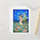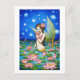 Schöne Koi Meerjungfrau in einem Teich umgeben von rosa Lilien und Sternen leuchten oben.