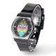 Aus seinem Himmelsbereich im Sternenhimmel sieht die glitzernde Orakeleule alles und weiß alles - frag deine Frage und sei bereit, ihre uralte Weisheit zu empfangen. Originelles Kunstwerk mit einem bunten, mystischen Uhusseer mit prophetisch weißen Augen und magischem Sternenlicht, das von der Spitze seines göttlich weisen Kopfes ausstrahlt. Große funkelnde Sterne markieren die Zahlenpositionen. ♡ Idyllfire