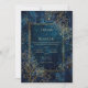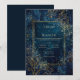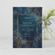 Transport your guests to an ethereal midnight garden with this breathtaking design. The deep, velvety navy backdrop is brought to life by a mesmerizing glow of golden stardust and shimmering blue leaves featuring intricate gilded veining. Graceful golden branches reach inward from the corners, framing your event details with a sense of quiet luxury and celestial romance. This atmospheric composition captures a dreamy, high-end vibe that is perfect for an elegant celebration held under the stars. This is a wedding invitation designed for formal evening ceremonies, enchanted forest celebrations, or luxury celestial-themed events.