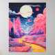 Diese exquisite Kunst vereint eine ruhige rosa Landschaft, wo eine kurvenreiche Straße den Betrachter einlädt, ihre ruhige Schönheit zu erkunden. Die sanften Farbtöne von Rosa schaffen eine traumhafte Atmosphäre, während der helle Mond ein sanftes Licht über die Szene wirft und dadurch seine bezaubernde Qualität steigert. Dieses Kunstwerk ist der ideale Ort, um jedem Raum eine Touch der Eleganz und Ruhe zu verleihen. Es bildet den idealen Ausgangspunkt für die moderne und traditionelle Dekoration.