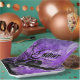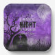 Sie planen eine düstere Hochzeit oder eine Halloween-Verlobung? Schauen Sie sich nur unsere individualisierbaren Halloween + Gothic Theme Paper Teller an! Personalisieren Sie dieses bezaubernde Design mit einer Jagdszene - einem Totenbaum inmitten eines Friedhofs, mit einem riesigen Spinnennetz, das über einen anpassbaren Grabstein gezogen ist, alles unter einem nebeligen, dunklen lila Himmel mit einem halb wolkenbedeckten Vollmond.