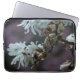 Ein Foto mit einem Zweig mit weißfließenden Blütenblättern und Federbuden im Vordergrund. Der Hintergrund ist ein rosa Meer, da der Baum ein blühender Pflaumenbaum ist, der von rosa Blume bedeckt ist. Copyright © 2022 Kimberly J Tilley. zazzle.com/store/developingnature