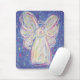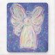 Die Kunst zeigt einen sanften Pastellengel vor einem sanft blauen Sternenhintergrund. Das Bild wurde zunächst mit Acryl gemalt und dann in Pastellfarben fertig gestellt, um weiche leuchtende Farben zu erzeugen.