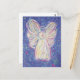 Die Kunst zeigt einen sanften Pastellengel vor einem sanft blauen Sternenhintergrund. Das Bild wurde zunächst mit Acryl gemalt und dann in Pastellfarben fertig gestellt, um weiche leuchtende Farben zu erzeugen.