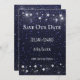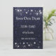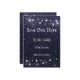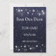 Personalisieren Sie eine einmalige Hochzeitsankündigung mit einer Starry Night Save the Date. Das Design der Ankündigung bietet einen Nachthimmel mit weißen Sternen und Text, den Sie mit Ihren Hochzeitsdaten personalisieren können. Zusätzliche Ankündigung Datum freihalten für dieses Design in verschiedenen Farben verfügbar.