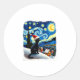Starry Night Festivals Black Cat Weihnachtsmannmüt Runder Aufkleber