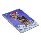 Animal Parade Festival Chihuahua Hund Weihnachtsgeschenke und Zubehör, die Ihnen von Stellen Sie sich das! Design zeigt unsere originelle Kunst eines niedlichen Schwarz-Bein Chihuahua, der für die Ferien mit einer leuchtend roten Weihnachtsmannmütze auf seinem Kopf und einem festlich grünen heiligen Kranz auf seinem Hintern mit einem fröhlichen roten Bogen. Auf vielen der Weihnachtskarten und Geschenke steht der lustige schwarz-bräune kleine Hund in einer schneebedeckten Landschaft mit einem von Traci Van Wagoner gemalten sternblauen Nachthimmel. Diese lustige Haustierkunst ist perfekt für Chihuahua-Liebhaber, Hundefreunde und humorvolle Tierkunstliebhaber jeden Alters. Nehmen Sie an der Tierparade teil und bringen Sie ein Lächeln in das Gesicht von jemandem, den Sie Liebe mit einem Geschenk unseres festlichen Chihuahua Hundes, der für die Ferien verkleidet ist. Woof!
