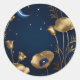 Starry Night mit Gold Crescent Moon Runder Aufkleber