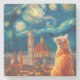 Starry Night Over Florence | Ginger Cat Art Steinuntersetzer
