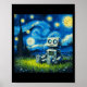 Starry Night Robot Funny Painting Art Meme Kids Me Poster
