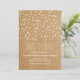 Die süße und skurrile Sternennacht Ankündigung Datum freihalten mit einem Kraftpapier-Hintergrund mit Kaskaden von niedlichen und winzigen Sternen. Dieses lustige Stern Save the Date laden ein zum Ankündigen einer schönen Sommerhochzeit im Abend. Dieses Design ist auch perfekt für eine Hochzeit zum Thema Astronomie, vielleicht in einem Planetarium. Einfach anpassen, einfach Ihren eigenen Text in die vorhandenen Textfelder einfügen. Klicken Sie auf "Anpassen", um weitere Personalisierungsoptionen zu erhalten.