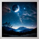 Nachthimmel mit Sternen und Mond am Himmel. Sommerlandschaft. Digitale Malerei.