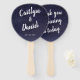 Dieser himmlische Nachthimmelfan ist der perfekte Gefallen für eine Hochzeit unter den Sternen. Der Ventilator hat einen marineblauen Sternenhimmel und hübsche Kalligraphieschriften. Personalisieren Sie es mit Ihren Namen und Hochzeitsdatum auf der Vorderseite, und eine besondere Nachricht an die Gäste auf der Rückseite.