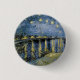 Strohdächer Hütten in Cordeville. Vincent Willem van Gogh. Nachtlandschaft in dunkelblauen und gelben Tönen. Es gibt eine Brücke über den Fluss. Im Vordergrund gehen ein Mann und eine Frau den Damm entlang. Die Sterne leuchten am Himmel. Reproduktion berühmter Kunstbilder im öffentlichen Bereich.