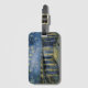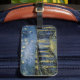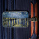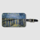 Strohdächer Hütten in Cordeville. Vincent Willem van Gogh. Nachtlandschaft in dunkelblauen und gelben Tönen. Es gibt eine Brücke über den Fluss. Im Vordergrund gehen ein Mann und eine Frau den Damm entlang. Die Sterne leuchten am Himmel. Reproduktion berühmter Kunstbilder im öffentlichen Bereich.