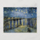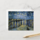 Strohdächer Hütten in Cordeville. Vincent Willem van Gogh. Nachtlandschaft in dunkelblauen und gelben Tönen. Es gibt eine Brücke über den Fluss. Im Vordergrund gehen ein Mann und eine Frau den Damm entlang. Die Sterne leuchten am Himmel. Reproduktion berühmter Kunstbilder im öffentlichen Bereich.