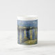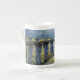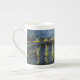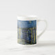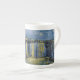 Strohdächer Hütten in Cordeville. Vincent Willem van Gogh. Nachtlandschaft in dunkelblauen und gelben Tönen. Es gibt eine Brücke über den Fluss. Im Vordergrund gehen ein Mann und eine Frau den Damm entlang. Die Sterne leuchten am Himmel. Reproduktion berühmter Kunstbilder im öffentlichen Bereich.