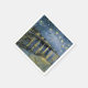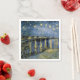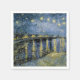 Strohdächer Hütten in Cordeville. Vincent Willem van Gogh. Nachtlandschaft in dunkelblauen und gelben Tönen. Es gibt eine Brücke über den Fluss. Im Vordergrund gehen ein Mann und eine Frau den Damm entlang. Die Sterne leuchten am Himmel. Reproduktion berühmter Kunstbilder im öffentlichen Bereich.
