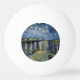 Strohdächer Hütten in Cordeville. Vincent Willem van Gogh. Nachtlandschaft in dunkelblauen und gelben Tönen. Es gibt eine Brücke über den Fluss. Im Vordergrund gehen ein Mann und eine Frau den Damm entlang. Die Sterne leuchten am Himmel. Reproduktion berühmter Kunstbilder im öffentlichen Bereich.