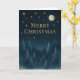 Schicken Sie elegante Urlaubswünsche mit dieser sternenvollen Weihnachtskarte. Ein glühender Vollmond und goldene Sterne leuchten über einem schneebedeckten Pinienwald und schaffen so eine zauberhafte Winterlandschaft.