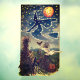 Halloween Window Cling mit einer funkelnden Sternenhimmel, die auf ihrem Besenstiel durch die Nacht fliegt.