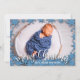 Scatter Blue Imitate Glitzer Sterne, Ihre Namen in schicken weißen Schriften, und frohe Weihnachten Gruß über das Foto Ihres Lieblings-Neugeborenen. Ändern Sie die Farbe auf der Rückseite unter dem Schnee. Fügen Sie mit dem CUSTOMIZE-Link weitere Fotos oder weitere Details auf der Rückseite hinzu. *Wählen Sie Matte für schwerstes Papier und High Definition für beste Foto-Qualität.