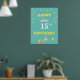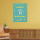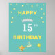 Sterne, Krontiara Krone und Zauberlampe 15. Geburtstag auf aquamarin blauem Poster. Haben Sie einen magischen Geburtstag! Text kann für alle Altersgruppen personalisiert sein! Es ist phantastisch, am Leben zu sein!