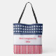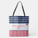 Diese Tasche ist perfekt für die Feier des Amerikanischen Unabhängigkeitstags und während des ganzen Sommers, gezeigt mit einem lustigen patriotischen US Flagge Flag Print-Design. Personalisieren Sie den Text nach Ihren eigenen Wünschen. Große Größe zeigt schwarze Gurte. Passen Sie dieses Objekt an oder kaufen Sie es wie geplant.