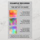 Eine Flyer-Vorlage, die für einen neuen Albumstart geeignet ist. Zeichnen Sie den Firmennamen oben (Front und Rückseite) zusammen mit dem Künstler/Band-Namen auf. Hauptbild des Albumdecks (geeignet für ein quadratisches Bild) in der Mitte mit Details unten. Verfügbarkeitsdetails unten. Die Rückseite hat die gleichen Kopfzeilen- und Fußdetails, zusammen mit drei Albumthumbnails mit Details entlang der Seite. Dies kann für andere Alben von demselben Künstler/Band verwendet werden oder zur Förderung von Alben anderer Künstler/Bands verwendet werden. Dieser Flyer ist in vielerlei Hinsicht anpassbar, alle Elemente sind anpassbar. Die Hintergrundfarbe und die Schriftart-Farbe können ebenfalls geändert werden.