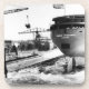 Start des Edmund Fitzgerald 6-8-1958. Der SS Edmund Fitzgerald (Spitzname "Mighty Fitz", "The Fitz" oder "The Big Fitz") war ein amerikanischer Frachter der Großen Seen, der am 8. Juni 1958 gestartet wurde. Über 15.000 Menschen nahmen an der Fitzgerald's Launch teil. Das Ereignis war lästig. Als Frau Edmund Fitzgerald das Boot taufte, indem sie eine Sektflasche über den Bogen schlug, brauchte sie drei Schwinge, um die Flasche zu zerbrechen. Der Start verzögerte sich um 36 Minuten, während die Crew der Werft mit der Freigabe der Kielblöcke kämpfte. Als sie seitwärts ins Wasser startete, stürzte das Schiff heftig in eine Anlegestelle. Obwohl sie berichtet hatte, während eines Sturms auf den Oberen See einige Schwierigkeiten zu haben, sank der Fitzgerald am 10. November 1975 plötzlich auf 150 m Wasser, ohne Notsignale zu senden. Die genaue Ursache ihres Untergangs bleibt ein Rätsel. Alle 29 an Bord waren verloren.