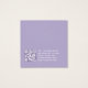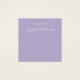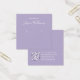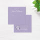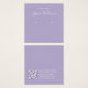 Eine einfache Ohrring-Darstellungskarte: Nur weißer Text auf lavenderfarbenem (heller lila) Hintergrund, wobei die Ohrringe durch zwei sehr kleine Kreise angezeigt werden. Der Name ist in einem eleganten Skript geschrieben. Es hat einen QR-Kabeljau auf der Rückseite, im unteren Teil, zum verlassen der Info.