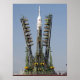 Das Startgerüst wird um die Soyuz-Rakete herum aufgestellt