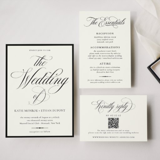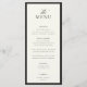 STATELY CALLIGRAPHY, black onyx and soft ecru, wedding menu. Features, elegant black calligraphy and serif typography and black onyx frame detail. Colors can be customized by using the design tool feature.