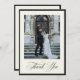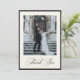 STATELY CALLIGRAPHY, wedding photo thank you card. Elegant classic calligraphy "Thank You" in onyx black with single photo on front, soft ecru cream color backgrounds.