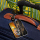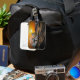 Dieser Gepäckanhänger hat eine Statue in einer Flasche.