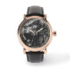 Uhr, Klassische Damenuhr mit schwarzen Lederarmband