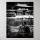 Statue vor dem buddhistischen Tempel, Oahu B&W Poster