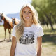 Staub setzt T - Shirt. © T-Shirts & Sweats bei Zazzle. Dieser Tee hat das Bild eines Cowboys, der sein Pferd in der Wüste reitet und das Sprichwort "Dust setzt Cowboy's Don't" darauf.