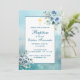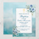 Staubblau-blumiges religiöses Jungen-Taufmotiv Einladung