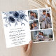 Staubblaue florale Foto-Collage QR-Code-Hochzeit Einladung