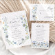 Verleihen Sie Ihrer Feier mit diesen Wasserfarben-Wildblumen-Rücksende-Adressaufklebern, die mit einem zarten Sprühnebel aus handgemalten Blüten in staubblauen und weichen Salbeigrün-Tönen versehen sind, den letzten Schliff. Eine wunderschöne Wahl für rustikale, boho- oder Gartenhochzeiten, sie passen perfekt zu der passenden Wildblumen-Hochzeitseinladungsserie und -Korrespondenzsammlung.