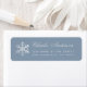 Ein elegantes staubblaues und silbernes Rücksendeetikett, empfohlen für die Weihnachtsgrußkarte. Es hat einen faux-silbernen Folien-Schneeblumen auf der linken Seite und grauen Text auf der rechten Seite. Der Name ist in eleganter Kalligrafie geschrieben, die Adresse in kleineren Großbuchstaben. Es kann für eine Weihnachts- oder Neujahrsgrußkarte verwendet werden. Der Hintergrund ist staubblau.