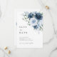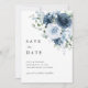 Staubblaues Marine-Wasserfarben-Blumen Elegant Save The Date